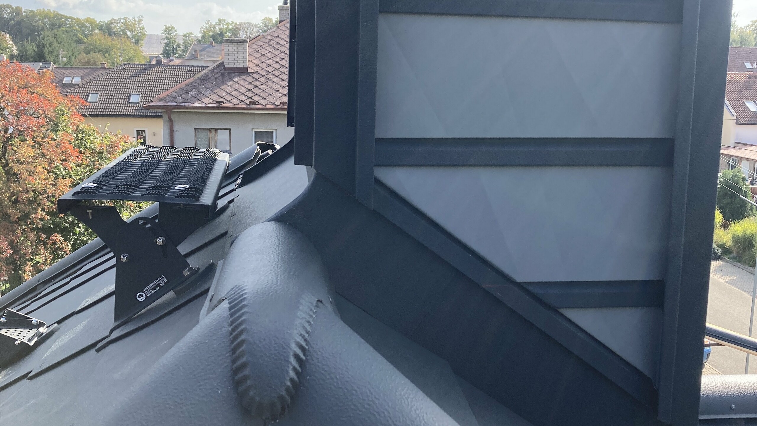 - detail růže na čele střechy: PREFALZ v barvě P.10 černé;
